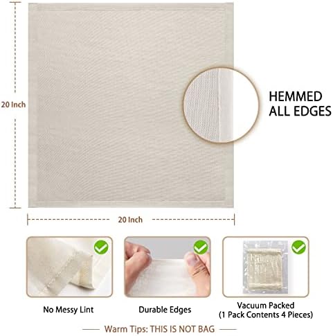 4 Pieces of 20 Inch x 20 Inch – As per the summarize of repeated cooking habits, 20×20 Inch is the most suitable size to meet your daily cooking needs, very convenient to use it and no need to cut. It can be also used as covering grow sprouts, wrap warm tortillas etc.