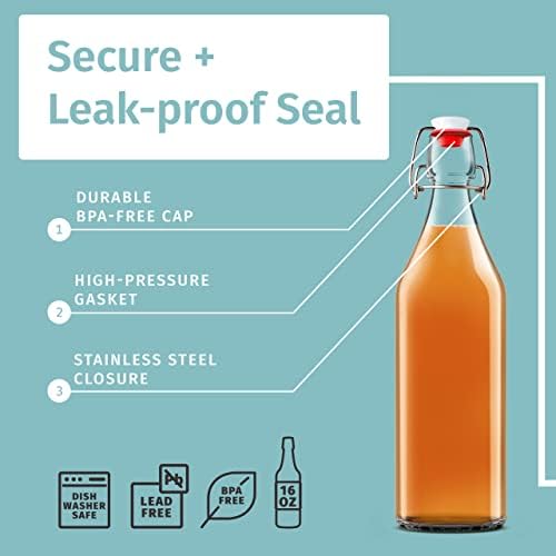 SAFELY PACKAGED: Want your flip top bottles for kombucha sent off safe & sound? Our goal is to ensure you receive the best product, in the safest way. Our 6 pack of bottles will be carefully double bubble wrapped with 3ply dividers in a 5ply box.