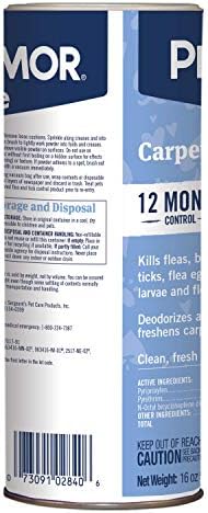 PET ODOR: PetArmor Home Carpet Flea and Tick Powder contains a pet odor eliminator, has a clean fresh scent, and is available in a 16-ounce cannister.