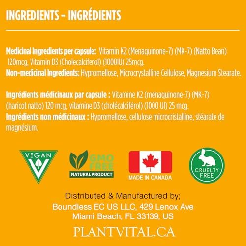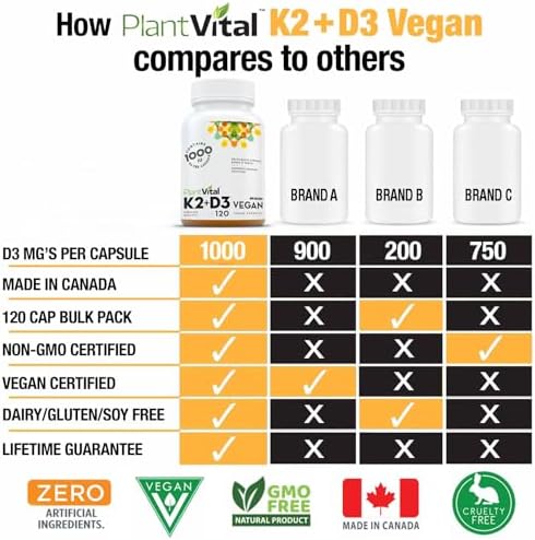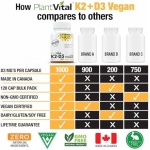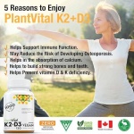 RISK-FREE PURCHASE: PlantVital Vegan Vitamin D3 + K2 organic is 100% pure. Made in Canada. Enjoy a Lifetime Satisfaction Guarantee. Contact Us Today for Unmatched Support via Call or Email.