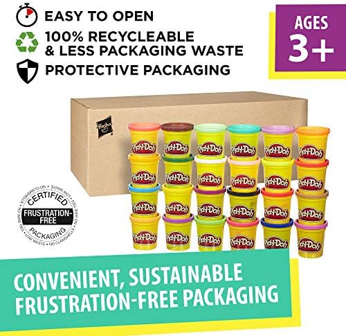 Create a rainbow world of colorful creations with the Play-Doh Modeling Compound 24-pack! These 3-ounce Play-Doh cans come in 24 assorted colors for all of your creative arts and craft needs. From stocking stuffers for kids and bulk party favors, to trick or treat toys and classroom prizes, these cans are full of everyone’s favorite Play-Doh modeling compound. Play-Doh sets make great toys for 2 year old boys and girls who love to squish, mix, and make fun creations with arts and crafts like modeling clay. Hasbro, Play-Doh, and all related properties are trademarks of Hasbro.