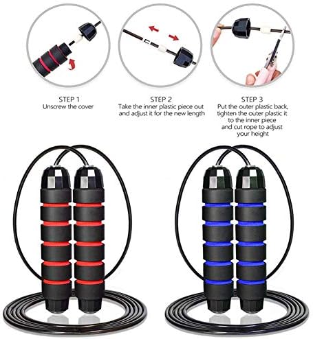 [Adjustable Length & Comfortable Handles] The Jump rope design with 9.8 feet long of the rope, it can be adjusted quickly according to your height,suitable for men women and kids. 2 handles are wrapped in soft memory foam on the surface and feel exceptionally comfortable.Do skipping rope together with your family and enjoy a happy exercise time.