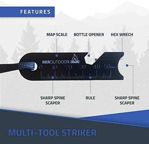 MULTI-TOOL STRIKER: Multi-Tool striker designed to give you a better experience in nature. It is a perfect camping tool. Can be used as Bottle Opener, concave tinder scraper, Ruler, Sharp Spine Scraper, Hex Wrench and Map Scale.