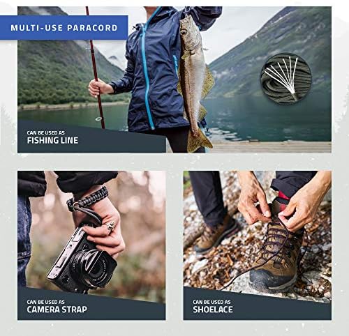 DOUBLE MULTI-FUNCTION SURVIVAL PARACORD ROPE: Contains 7 inner strands. Total length 45 feet. 2 times longer than similar products. This multi-purpose Mil-spec 550 paracord lanyard is one of the most important things that a nature lover must keep with him. You can use it to Hang Around your flint and steel rod to neck, as an Emergency Tourniquet, Zipper Pull, Boot Laces, Lanyard to Hold Items, Fishing Line, etc.