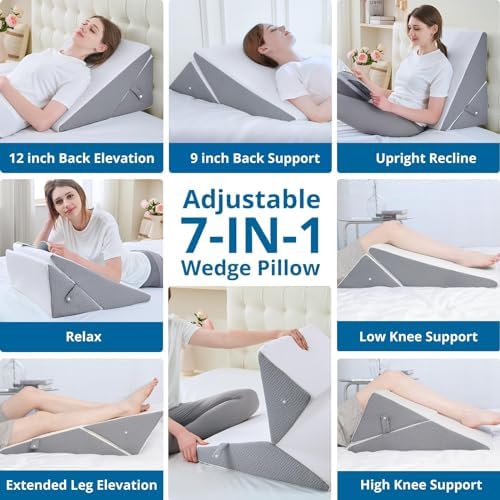 7-in-1 Adjustable Design: Indulge in versatile comfort with our meticulously engineered 7-in-1 adjustable wedge pillow. Ergonomically designed 30-degree angle and flexible height (9″ or 12″), our incline pillow could cater to your specific needs, promoting optimal spinal alignment and reducing muscle tension. The spacious dimensions of 22” depth x 22” width also provide a relaxation area that enhances sleep quality.