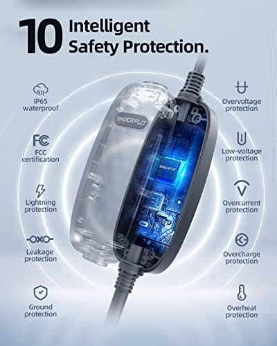 🚗𝐏𝐥𝐮𝐠-𝐩𝐥𝐚𝐲 𝐟𝐨𝐫 𝐄𝐯𝐞𝐫𝐲𝐰𝐡𝐞𝐫𝐞:Shockflo EV charger feature with 21FT charging cable, it is long enough for most driveways or garages. And plug-play design ensures you charge your car more conveniently and faster without any installation. And LED indicator lights make you master the charging state easily.