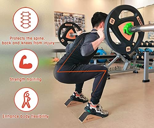 [BENEFITS]: Training with a cork squat wedge block can help non professional athletes perform high load workouts without undue stresson the lower back,improve ankle and hip flexibility,optimize knee stability and prevent injury.the squat wedge for heel elevated squat prevents falls.