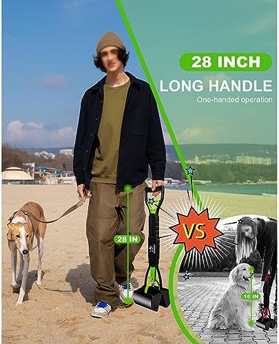 [Comfortable Design]-The 28-inch Pooper Scooper for large dogs allows most people to pick up the dog poop easily without bending over! A comfortable arched hand grip ensures scooping action with less strength.