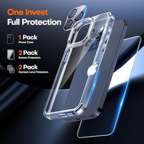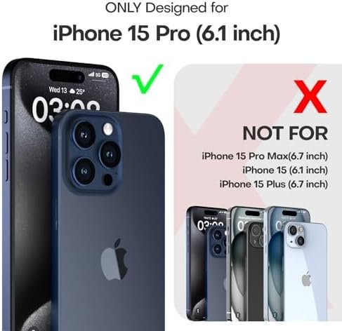 • 5-in-1 360° Full Protection This Shockproof for iPhone 15 Pro Case with 2 Pcs High Quality 9H Tempered Glass can protect your phone screen from scratch and broken but ultra-thin, comfortable and sensitive touch make you feel as nothing on screen. Provide 2 Pcs Camera Lens Protector that can protect the camera 100% and will not affect the quality of the photo.