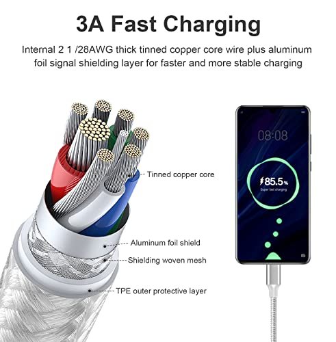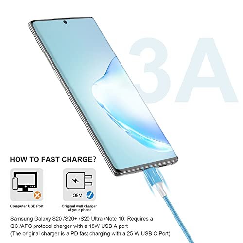 • USB C Charger Perfect Compatibility: We provide this (Blue 3ft/Green 3ft/Purple 6ft/Pink 6ft/White 10ft) 5-Pack Nylon Braided USB Type-C Cable . Compatible with all USB C devices, charger for Samsung Galaxy S22/S20/S20Plus/S20Ultra/S10/S10e/S9/S8, Note 20 10 9 8 Plus/S8+, LG G6,G5,V30,V20, LG Nexus 5X , Lumia 950, Lumia 950XL,Huawei P50 40 30 20/Mate40 Pro/nova 8 Pro and other usb type c cable device.