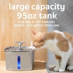 Large Capacity Water Tank. Worry less about your furry friend running out of water. Our pet fountain features a generously sized water reserve tank to help you avoid frequent refilling, ensuring your pets are healthy, hydrated, and happy.