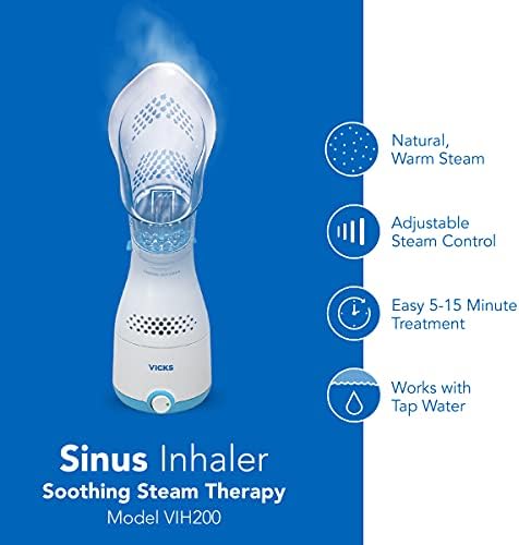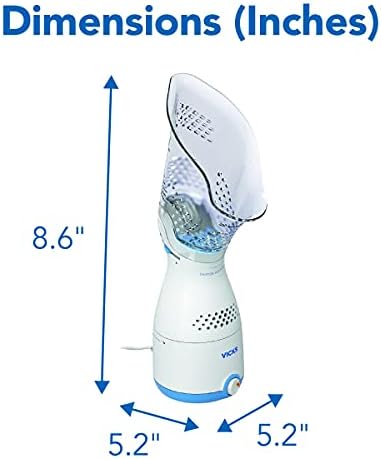 The Vicks Personal Sinus Steam Inhaler helps provide year-round symptomatic relief from cough and congestion caused by colds, seasonal allergies and sinusitis. With an ergonomic designed face mask, it provides a targeted, warm mist of steam for temporary symptomatic relief in a 5-15 minute treatment. It’s also compatible with soothing menthol Vicks VapoPads for added comfort, and includes variable steam control to adjust steam intensity. The nasal steamer is quick and easy to use, penetrating nasal, sinus and throat passages for fast relief. It helps naturally alleviate congestion, dryness and irritation, and may provide sinus relief and help with breathing problems like bronchitis, allergies, and colds with cough and congestion. At Vicks, we believe that everyone deserves a touch of care. Our line of humidifiers, steam inhalers and vaporizers help you breathe better, wherever you are. This Steam Inhaler (with or without Vicks VapoPads) is not recommended for use by children.