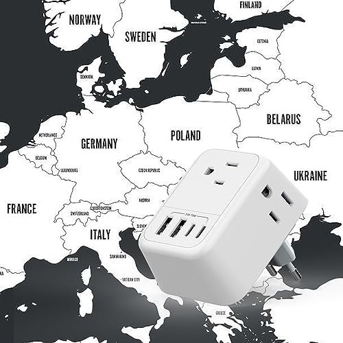 • Powerful Universal Outlet: Universal travel adapter can accept type A, B, C, G, I, J, L, and N plugs. European travel adapter plug outlet can be used with most countries plugs such as the US, European Germany, France, Iceland, Netherlands, Norway, Poland, Portugal, Russia, Spain, Tunisia, Turkey, Austria, Croatia, Egypt, Finland, Greece, Hungary, Jordan, Mongolia, Morocco, Myanmar, Korea, Romania, Slovakia, Ukraine, China, and Australia, etc.