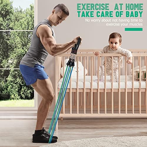 💪【5 Level Exercise Bands Set】- Walito resistance bands set come with 5 different resistance levels: 10lbs, 20lbs, 30lbs, 40lbs and 50lbs in 5 different colors, both in 51″. You can use the bands independently or in any combination with a maximum resistance level of 150lbs, make you can clearly feel the muscle building up after every stretch.