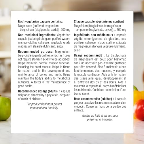 Magnesium Bisglycinate from Webber Naturals is a more absorbable form of magnesium that is calming and gentle on the digestive system. As it does not require stomach acidity to be absorbed, it does not cause diarrhea or stomach upset. Magnesium helps maintain proper muscle function, including the heart, and supports healthy bones and teeth, tissue formation, and the metabolism of nutrients.