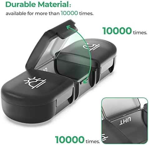 Track Your Medication: Pill container (morning, noon and night) sort your pills 3 times a day; larger black shell can accommodate 7 independent pill box organizer to plan the pills for a week. Separate pill holder, this pill dispenser has 7 movable vitamin organizers, which can be taken out separately every day for your on the go use.