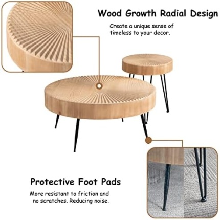 【Sturdy & Durable Structure】High quality and wear-resistant wooden particle board ensure stability and durability for years of use.The sturdy and thick metal table legs make the round coffee table strong enough to hold 130 lbs.