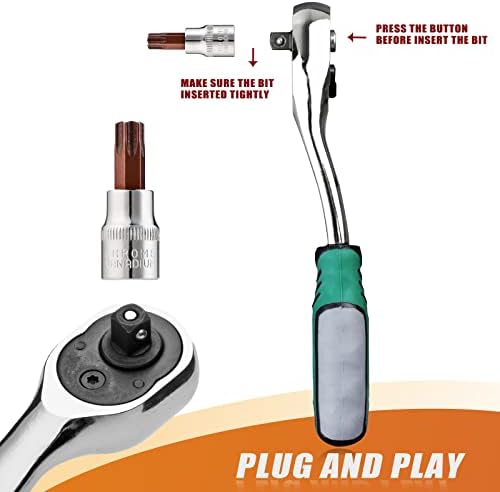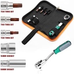 Bent Ratchet Wrench better than straight, provide much torque and plenty of swing room for the Torx Tool Kit, lower profile ratchet without interference with the door