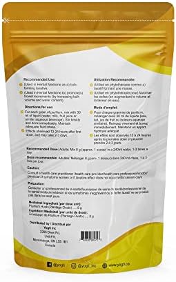 Suggested use – Mix 1 tsp (10g) of psyllium with at least 8 oz (A full glass) of water or other fluid