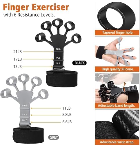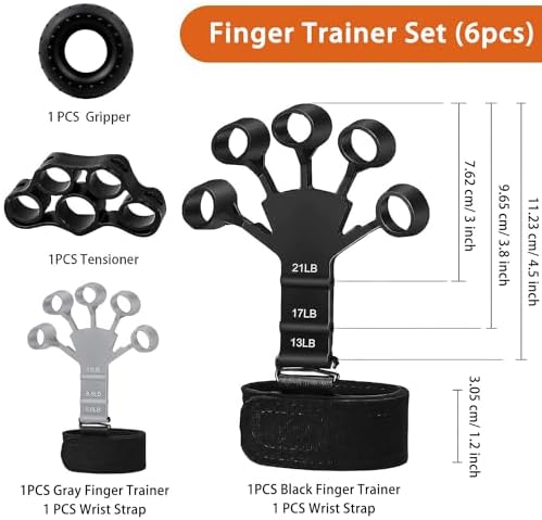 ✅【Perfect Gift Set – 6PCS】Includes 1 Black Finger Trainer, 1 Gray Finger gripper, 2 Wrist Straps, 1 hand strengthners, 1 Finger Tensioner Griper. Ideal for athletes (rock climbing, fitness, tennis, baseball, boxing), musicians (guitar, bass, pianist, violinist), and daily activities (driving, typing, writing, working). A thoughtful gift for friends and family on Thanksgiving, Christmas, and Halloween!