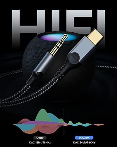 • Premium Audio Quality: This USB Type C to 3.5mm aux cable includes built in newest powerful DAC-digital to analog converter ensuring stable and lossless sound transmission of audio signal, and the USB C to 3.5mm Audio Jack Adapter has clear and stable sound quality, Hi-Res up to 24bit/96KHz, provide flawlessly music transmission and clear HIFI sound quality.