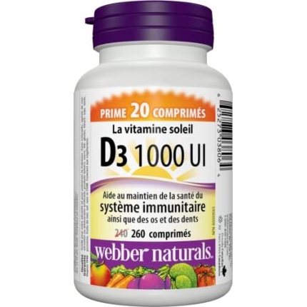Webber Naturals Vitamin D3 1000 IU, 260 Tablets, For Healthy Bones, Teeth